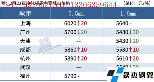 冷軋板卷:2月22日,全國24個主要城市1.0mm冷卷均價5580元/噸,較上個交易日上漲4元/噸。今日黑色期貨呈現高開低走的態勢,并且午后期貨盤面大幅跳水,現貨市場較為冷清,詢單人數明顯減少。無縫厚壁鋼管廠家方面,進入2月下旬,各大無縫厚壁鋼管廠家結算陸續公布,據了解,AG對上海地區冷軋結算價到庫5470元/噸,BG對上海地區冷軋結算價到庫5450元/噸,稍有盈利空間。下游方面,下游終端企業以謹慎觀望為主,再加上現處于銷售淡季,需求持續疲軟。綜合來看,故預計23日國內冷軋板卷價格或將震蕩偏弱運行。