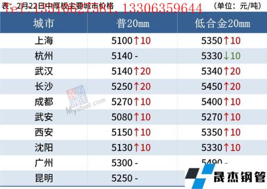 中厚板:2月22日,全國24個主要城市20mm普板均價5198元/噸,較上個交易日上漲8元/噸。今日部分無縫厚壁鋼管廠家出廠鎖單價進行調整,幅度在-20~40之間,收單情況整體偏差。據對各地商戶的簡單調研,目前需求較去年同期普遍偏差,成交方面不理想。綜合來看,預期23日國內中板價格震蕩偏弱運行。