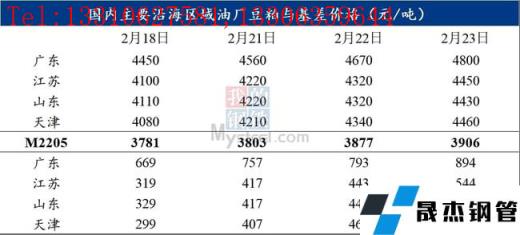 具體來看下表最近4個(gè)交易日豆粕期現(xiàn)貨價(jià)格,以沿海主要區(qū)域廣東、江蘇、山東、天津?yàn)槔3霈F(xiàn)豆粕現(xiàn)貨單邊價(jià)格與基差價(jià)格齊飛盛況,怎一“漲”’字了得?豆粕現(xiàn)貨價(jià)格每個(gè)交易日超100元/噸的速度飛奔。據(jù)農(nóng)產(chǎn)品數(shù)據(jù)顯示,沿海主要區(qū)域2月18-2月22日現(xiàn)貨價(jià)格由4080-4450元/噸,漲至4430-4800元/噸,累計(jì)上漲350元/噸,累計(jì)漲幅7.87%-8.58%;現(xiàn)貨基差價(jià)格由299-699元/噸,漲至524-894元/噸,累計(jì)上漲195-225元/噸,累計(jì)漲幅2.79-7.53%。