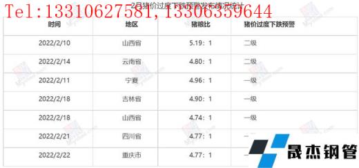2022年1月國(guó)內(nèi)豬價(jià)持續(xù)走低,月內(nèi)跌幅12%以上。春節(jié)過(guò)后,國(guó)家發(fā)改委18日發(fā)布豬價(jià)過(guò)度下跌二級(jí)預(yù)期,將“視情啟動(dòng)豬肉儲(chǔ)備收儲(chǔ)工作”。隨后國(guó)內(nèi)一些省份陸續(xù)發(fā)布豬價(jià)過(guò)度下跌預(yù)警。截至22日,包括寧夏、吉林、山西、四川、重慶等地發(fā)布一級(jí)預(yù)警,計(jì)劃啟動(dòng)豬肉收儲(chǔ)等。