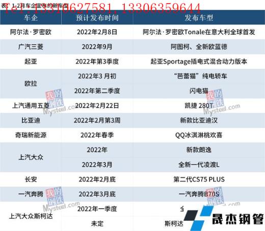 免責聲明:本網站(山東聊城晟杰無縫鋼管廠www.centurybiz.cn)刊載的“1-2月19家車企發布新車型規劃”等均源于網絡,版權歸原作者所有,且僅代表原作者觀點,本文所載信息僅供參考。轉載僅為學習與交流之目的,如無意中侵犯您的合法權益,請及時聯系刪除。本網站刊登此篇文章并不意味著本站贊同其觀點或證實其內容的真實性,我們不對其科學性、嚴肅性等作任何形式的保證。如果侵犯了您的版權,請盡快聯系我們予以撤銷,謝謝合作!