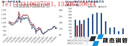 回顧2月鐵礦基本面情況,遠(yuǎn)期供應(yīng)端2月份全球鐵礦石發(fā)運(yùn)量受到澳大利亞的泊位檢修和巴西的持續(xù)降雨影響下降,較1月減少2186萬(wàn)噸至1.02億噸;近端供應(yīng)由于前期發(fā)運(yùn)偏低,2月份中國(guó)45鐵礦石到港量同步回落。需求方面,2月高爐鐵水產(chǎn)量在冬奧會(huì)期間嚴(yán)格限產(chǎn)的影響下先降后增,整體較1月下降。鐵礦石供需兩端雙降,但是供應(yīng)降幅更大,供需差從1月的1200萬(wàn)噸收窄至311萬(wàn)噸,但仍不改供大于求的局面。體現(xiàn)到庫(kù)存端,2月港口庫(kù)存月環(huán)比累庫(kù)577萬(wàn)噸,在港船舶減少了44條,因此2月鐵礦石基本面矛盾較小,對(duì)礦價(jià)并無(wú)支撐作用。此外,冬奧會(huì)限產(chǎn)嚴(yán)格疊加春節(jié)期間無(wú)縫厚壁鋼管廠家消耗自有庫(kù)存為主,無(wú)縫厚壁鋼管廠家需求低迷下礦價(jià)下行壓力較大,同時(shí)2月政府對(duì)價(jià)格監(jiān)管力度加強(qiáng)抑制部分投機(jī)需求,因此2月整體礦價(jià)震蕩下行。