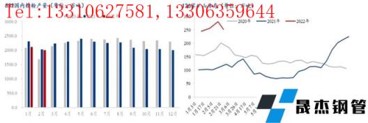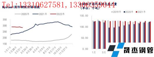 海外需求:國(guó)際鋼價(jià)震蕩下行,1月各國(guó)高爐生產(chǎn)運(yùn)行穩(wěn)定。截至2月25日,國(guó)際鋼鐵價(jià)格指數(shù)較上月底下降3.9個(gè)點(diǎn),降幅1.4%。世鋼協(xié)最新數(shù)據(jù)顯示,1月除中國(guó)外生鐵產(chǎn)量3841.1萬(wàn)噸,日均123.9萬(wàn)噸/天,環(huán)比上月增加0.1萬(wàn)噸/天,增幅0.1%。1月各國(guó)高爐生產(chǎn)運(yùn)行穩(wěn)定,目前的鋼價(jià)對(duì)無(wú)縫厚壁鋼管廠家生產(chǎn)積極性仍支撐,但是2月和3月,俄烏軍事行動(dòng)讓其涉及的高爐生產(chǎn)充滿(mǎn)不確定性,兩國(guó)1月生鐵產(chǎn)量占全球除中國(guó)外生鐵產(chǎn)量的17%。