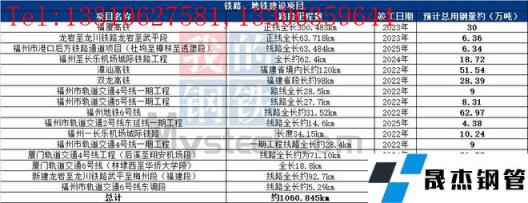 未來2-3年福建省鐵路、地鐵項(xiàng)目在建新建線路總長約1060.845公里,據(jù)不完全統(tǒng)計(jì)預(yù)計(jì)總用鋼量約283.082萬噸左右。