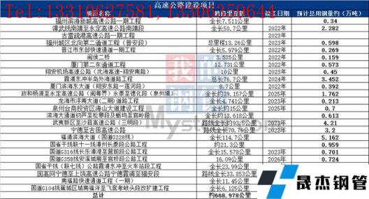 未來2-3年福建省高速公路在建新建線路總長約668.978公里,據(jù)不完全統(tǒng)計(jì)預(yù)計(jì)總用鋼量約30.235萬噸左右。