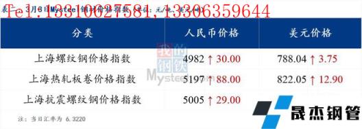 3月3日普鋼絕對價格指數(shù)變化:綜合指數(shù)5226.46,上漲37.22;螺紋鋼指數(shù)4957.35,上漲23.7;線材指數(shù)5294.7,上漲25.19;熱軋板卷指數(shù)5173.84,上漲71.05;冷軋板卷指數(shù)5570.47,上漲30.18;中厚板指數(shù)5186.84,上漲19.23。