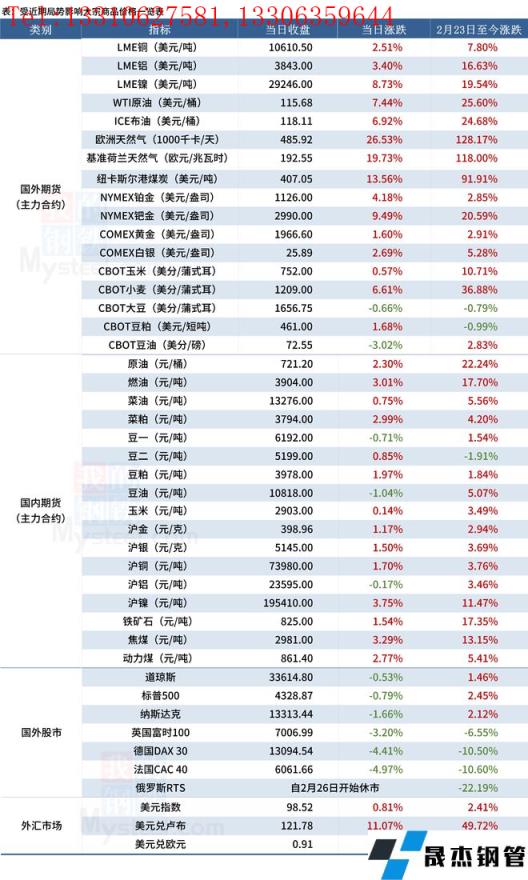 免責聲明:本網(wǎng)站(山東聊城晟杰無縫鋼管廠www.centurybiz.cn)刊載的“2022年03月07日早讀:周末唐山鋼坯累漲60元,國際油價開盤升破130美元”等均源于網(wǎng)絡,版權(quán)歸原作者所有,且僅代表原作者觀點,本文所載信息僅供參考。轉(zhuǎn)載僅為學習與交流之目的,如無意中侵犯您的合法權(quán)益,請及時聯(lián)系刪除。本網(wǎng)站刊登此篇文章并不意味著本站贊同其觀點或證實其內(nèi)容的真實性,我們不對其科學性、嚴肅性等作任何形式的保證。如果侵犯了您的版權(quán),請盡快聯(lián)系我們予以撤銷,謝謝合作!