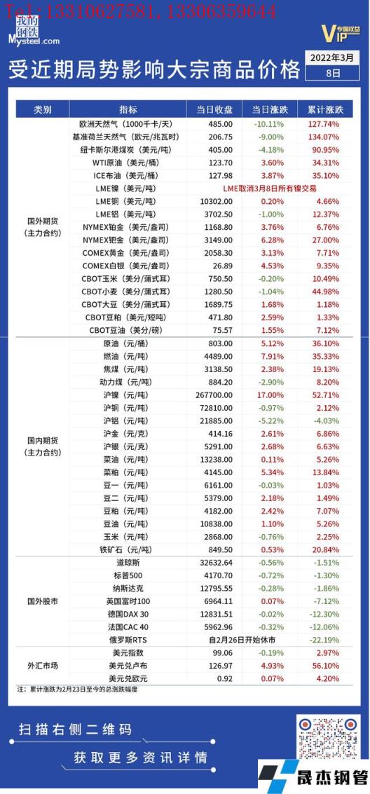 免責聲明:本網站(山東聊城晟杰無縫鋼管廠www.centurybiz.cn)刊載的“受近期局勢影響大宗商品價格一覽表(3月8日)”等均源于網絡,版權歸原作者所有,且僅代表原作者觀點,本文所載信息僅供參考。轉載僅為學習與交流之目的,如無意中侵犯您的合法權益,請及時聯系刪除。本網站刊登此篇文章并不意味著本站贊同其觀點或證實其內容的真實性,我們不對其科學性、嚴肅性等作任何形式的保證。如果侵犯了您的版權,請盡快聯系我們予以撤銷,謝謝合作!