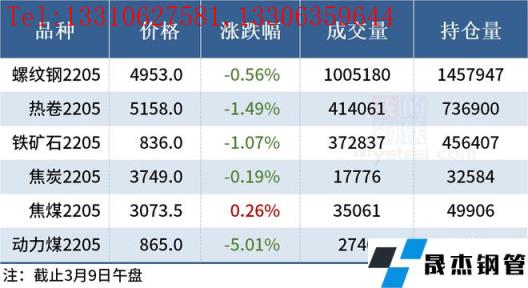 免責聲明:本網站(山東聊城晟杰無縫鋼管廠www.centurybiz.cn)刊載的“2022年03月09日午報:鋼價多數下跌,動力煤期貨跌逾5%”等均源于網絡,版權歸原作者所有,且僅代表原作者觀點,本文所載信息僅供參考。轉載僅為學習與交流之目的,如無意中侵犯您的合法權益,請及時聯系刪除。本網站刊登此篇文章并不意味著本站贊同其觀點或證實其內容的真實性,我們不對其科學性、嚴肅性等作任何形式的保證。如果侵犯了您的版權,請盡快聯系我們予以撤銷,謝謝合作!