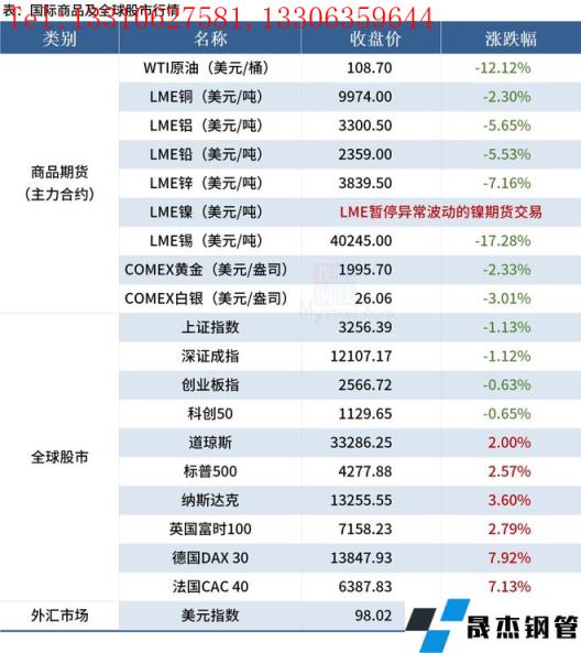 免責(zé)聲明:本網(wǎng)站(山東聊城晟杰無縫鋼管廠www.centurybiz.cn)刊載的“2022年03月10日早讀:黑色系夜盤全線下挫,國際油價大跌超12%”等均源于網(wǎng)絡(luò),版權(quán)歸原作者所有,且僅代表原作者觀點,本文所載信息僅供參考。轉(zhuǎn)載僅為學(xué)習(xí)與交流之目的,如無意中侵犯您的合法權(quán)益,請及時聯(lián)系刪除。本網(wǎng)站刊登此篇文章并不意味著本站贊同其觀點或證實其內(nèi)容的真實性,我們不對其科學(xué)性、嚴(yán)肅性等作任何形式的保證。如果侵犯了您的版權(quán),請盡快聯(lián)系我們予以撤銷,謝謝合作!