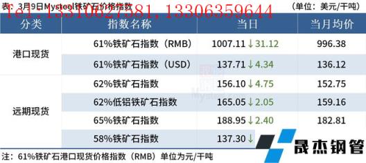 ◎3月9日,全國主港鐵礦石成交60.00萬噸,環(huán)比減33.7%;237家主流貿(mào)易商建材成交13.07萬噸,環(huán)比減6.3%。