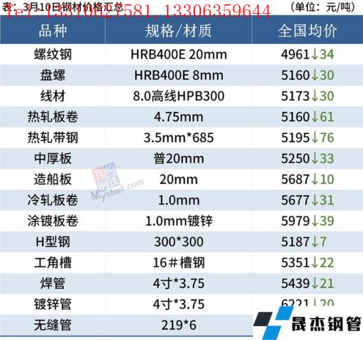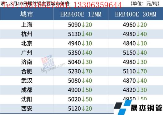 建筑厚壁無縫鋼管:3月10日,全國31個主要城市20mm三級抗震螺紋鋼均價4961元/噸,較上個交易日下跌34元/噸。本周供給繼續小增,庫存迎來拐點,且降幅尚可。綜合來看,目前供給仍然處于回升階段,但整體增量有限;需求方面,隨著天氣逐漸好轉,需求有所回升。考慮到近期國際形勢仍然不穩,短期現貨市場受情緒波動影響較大。因此預計11日國內建筑厚壁無縫鋼管價格將繼續窄幅趨弱為主。
