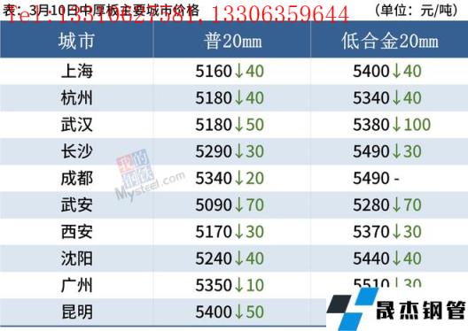 中厚板:3月10日,全國24個主要城市20mm普板均價5250元/噸,較上個交易日下跌33元/噸。據周度厚壁無縫鋼管產量、庫存數據顯示,本周中板產量減4.06萬噸,廠庫降2.70萬噸,社庫降4.66萬噸,產量庫存雙減,無縫厚壁鋼管廠家受原料漲價及兩會影響,一定程度減量,貿易商投機性需求較少,備貨水平整體有所下降,需求方面小幅回升,程度有限。綜合預計,11日國內中厚板價格震蕩調整為主。