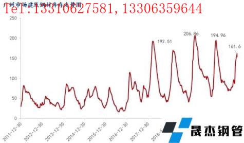 圖1:廣州市場建筑厚壁無縫鋼管庫存走勢圖 來源:鋼聯數據
