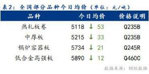 今日全國部分品種均價總體趨弱,整體漲幅為12~53元/噸。