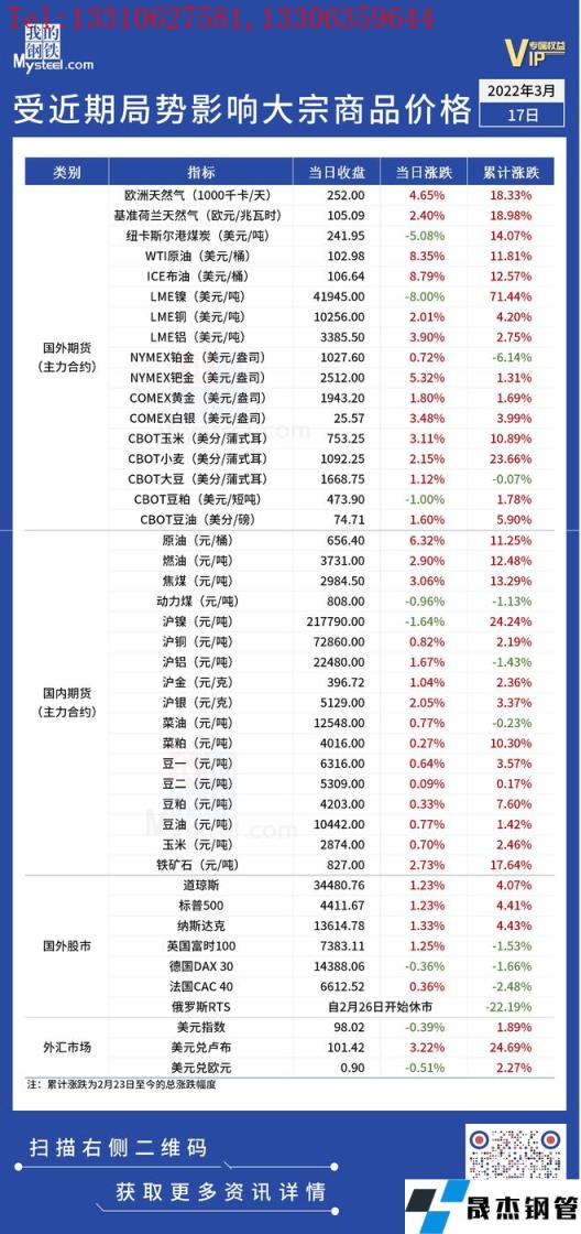 免責聲明:本網站(山東聊城晟杰無縫鋼管廠www.centurybiz.cn)刊載的“受近期局勢影響大宗商品價格一覽表(3月17日)”等均源于網絡,版權歸原作者所有,且僅代表原作者觀點,本文所載信息僅供參考。轉載僅為學習與交流之目的,如無意中侵犯您的合法權益,請及時聯系刪除。本網站刊登此篇文章并不意味著本站贊同其觀點或證實其內容的真實性,我們不對其科學性、嚴肅性等作任何形式的保證。如果侵犯了您的版權,請盡快聯系我們予以撤銷,謝謝合作!