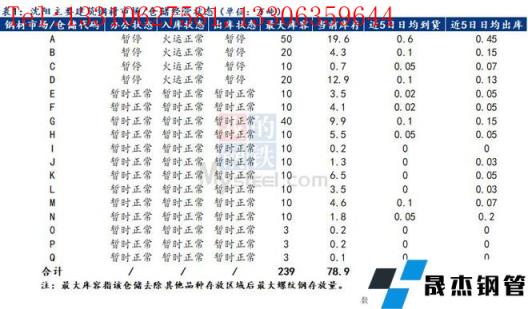 1、沈陽市場17家建筑厚壁無縫鋼管市場/倉儲樣本企業最大建筑厚壁無縫鋼管庫容239萬噸,現有庫存78.9萬噸,考慮到盤線占空間較大、目前庫容飽和度應在50%左右;
