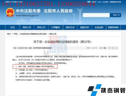 免責聲明:本網站(山東聊城晟杰無縫鋼管廠www.centurybiz.cn)刊載的“快訊:沈陽加強疫情管控 鋼材_無縫鋼管市場或全面暫停營業”等均源于網絡,版權歸原作者所有,且僅代表原作者觀點,本文所載信息僅供參考。轉載僅為學習與交流之目的,如無意中侵犯您的合法權益,請及時聯系刪除。本網站刊登此篇文章并不意味著本站贊同其觀點或證實其內容的真實性,我們不對其科學性、嚴肅性等作任何形式的保證。如果侵犯了您的版權,請盡快聯系我們予以撤銷,謝謝合作!