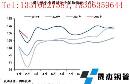 鋼鐵是終端制造業(yè)的重要生產(chǎn)原材料,以鋼鐵消費(fèi)趨勢(shì)為觀測(cè)視角可以較為準(zhǔn)確的判斷下游制造業(yè)發(fā)展?fàn)顩r。2月鋼鐵業(yè)供給指數(shù)為146.92,同比下降5.26,環(huán)比下降2.86%。北方地區(qū)在采暖季和冬奧會(huì)環(huán)保影響下,厚壁無(wú)縫鋼管產(chǎn)量管控依然嚴(yán)格。據(jù)統(tǒng)計(jì),2月全國(guó)粗鋼產(chǎn)量6738.5萬(wàn)噸,日均產(chǎn)量240.66萬(wàn)噸,環(huán)比減少9.79萬(wàn)噸,降幅3.91%,同比下降13.86%。消費(fèi)方面,五大品種厚壁無(wú)縫鋼管消費(fèi)環(huán)比下降19.63%,同比下降4%。具體來(lái)看,房地產(chǎn)資金緊張雖有緩解,但受季節(jié)影響,用鋼量繼續(xù)下降,建筑厚壁無(wú)縫鋼管表觀消費(fèi)量環(huán)比下降38%。制造業(yè)方面,受春節(jié)和疫情干擾因素影響,2月份,制造業(yè)企業(yè)復(fù)工復(fù)產(chǎn)較晚,實(shí)際用鋼消費(fèi)下降,其中熱卷消費(fèi)同比下降7.4%,環(huán)比下降8.2%。