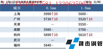 冷軋板卷:3月22日,全國24個主要城市1.0mm冷卷均價5649元/噸,較上個交易日上漲3元/噸。今日黑色系期貨盤面走勢較強,部分區域熱、冷價差處于持續收窄態勢;受疫情影響,運輸方面受阻,到貨情況不佳,部分市場現有庫存不多壓力較小,貿易商以出貨回籠資金為主。預計23日國內冷軋板卷價格或將震蕩運行。