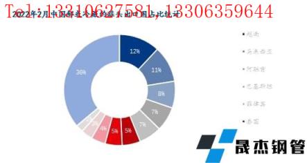 2022年2月中國干大蒜主要出口省份為山東省、河北省及上海市。其中山東省本月出口量為1.18萬噸,環(huán)比減少17.59萬噸,降幅為93.71%,占比81%。河北省本月出口量為0.07萬噸,環(huán)比減少1.12萬噸,降幅為94.12%,占比5%。上海市本月出口量為0.06萬噸,環(huán)比減少1.26萬噸,降幅為95.45%。綜合來看,干大蒜本月各省份出口份額大幅減少。