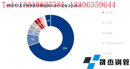 2022年2月中國其他鮮或冷藏的大蒜主要出口省份為山東省、河南省。其中山東省本月出口量為0.23萬噸,環(huán)比減少0.10萬噸,降幅為30.3%,占比55%;河南省本月出口量為0.16萬噸,環(huán)比持平,占比39%。