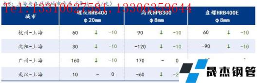 以主要品種螺紋鋼來看,上海市場(chǎng)與杭州價(jià)差日環(huán)比小幅收窄,價(jià)差為-60元/噸。上海市場(chǎng)與華南區(qū)域價(jià)差日環(huán)比小幅收窄,價(jià)差為-160噸。上海市場(chǎng)與東北區(qū)域日環(huán)比價(jià)差小幅收窄,價(jià)差為-30元/噸。上海市場(chǎng)與華中區(qū)域價(jià)差日環(huán)比持平,價(jià)差為-10元/噸。