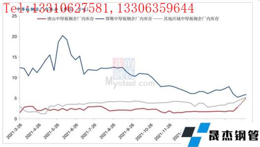 截至3月18日,京津冀地區(qū)中厚板廠(chǎng)內(nèi)庫(kù)存為12.3萬(wàn)噸,邯鄲地區(qū)5.2萬(wàn)噸,唐山地區(qū)2.8萬(wàn)噸,其他地區(qū)4.3萬(wàn)噸。由于交通管制,車(chē)輛進(jìn)出廠(chǎng)困難,鋼企要求司機(jī)持有48小時(shí)核酸檢測(cè)陰性證明和行程碼綠碼以及車(chē)輛通行證三證齊全方可出入廠(chǎng),基本上運(yùn)輸處于停滯狀態(tài)。部分鋼企工人封控在廠(chǎng)區(qū),雖然保持生產(chǎn),但是班次有所減少,并且全員做核酸。綜合來(lái)看,預(yù)計(jì)月底中厚板鋼企廠(chǎng)內(nèi)庫(kù)存會(huì)有大幅累計(jì),唐山中厚板鋼企廠(chǎng)內(nèi)庫(kù)存預(yù)計(jì)5萬(wàn)噸左右,京津冀地區(qū)中厚板鋼企庫(kù)存預(yù)計(jì)達(dá)到15萬(wàn)噸。