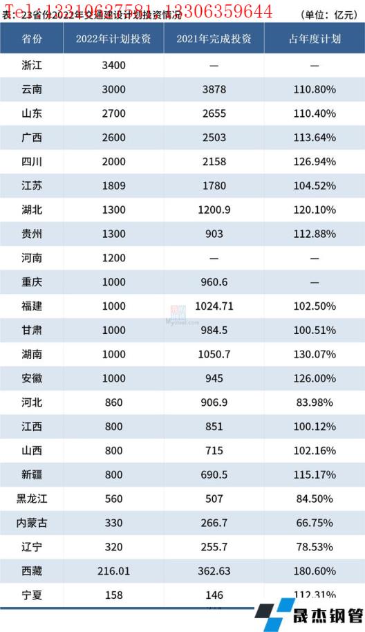 免責聲明:本網站(山東聊城晟杰無縫鋼管廠www.centurybiz.cn)刊載的“23省份2022年交通建設計劃投資近3萬億元”等均源于網絡,版權歸原作者所有,且僅代表原作者觀點,本文所載信息僅供參考。轉載僅為學習與交流之目的,如無意中侵犯您的合法權益,請及時聯系刪除。本網站刊登此篇文章并不意味著本站贊同其觀點或證實其內容的真實性,我們不對其科學性、嚴肅性等作任何形式的保證。如果侵犯了您的版權,請盡快聯系我們予以撤銷,謝謝合作!