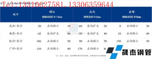 統一為理計單位后,武漢高于長沙20元/噸,南昌低于長沙42元/噸,杭州高于長沙186元/噸,廣州高于長沙110元/噸。
