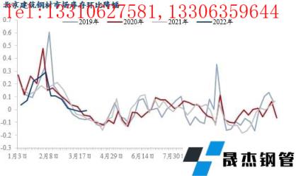 2022年北京建筑厚壁無縫鋼管市場庫存量在春節后的第5周達到峰值,較往年累庫周期延長了1-2周,之后庫存量進入緩慢去化階段,但是從近幾周庫存去化情況來看,庫存下降情況不及預期。截止到3月24日,北京建筑厚壁無縫鋼管市場庫存量82.18萬噸,周環比降0.72%,2019-2021年同期的周環比降幅分別為7.9%、5.3%、8%;另外目前市場庫存量較今年庫存高點下降了2.8%,而2019-2021年同期庫存量較當年的庫存峰值分別下降了17.8%、9.3%、15.5%。庫存下降除供應量環比略增外,主因是需求下降,且受疫情影響資源向外分流困難。