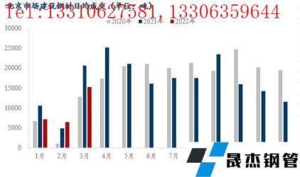 北京建筑厚壁無縫鋼管市場作為集散地,資源除在北京本地消化外,也向河北的廊坊、保定、滄州、衡水、石家莊、秦皇島等市場有分流,據調研,周邊區域需求占北京市場總需求的30%,目前部分市場如廊坊、滄州、秦皇島等因突發公共衛生事件影響,運輸受限,北京周邊需求略有減量。