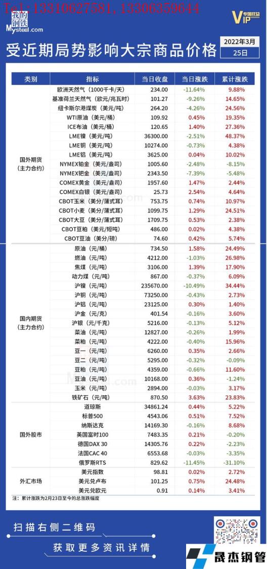 近期,受國際局勢(shì)影響,全球金融及大宗商品市場出現(xiàn)較大波動(dòng)。3月25日,倫鎳、俄羅斯RTS恢復(fù)交易,當(dāng)日漲跌波動(dòng)較大。匯總情況如下: