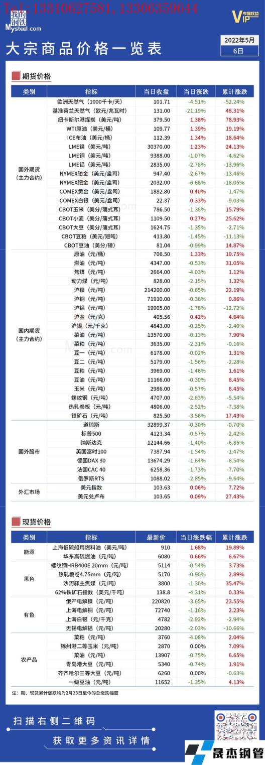 免責聲明:本網站(山東聊城晟杰無縫鋼管廠www.centurybiz.cn)刊載的“俄烏局勢丨大宗商品價格一覽表(5月6日)”等均源于網絡,版權歸原作者所有,且僅代表原作者觀點,本文所載信息僅供參考。轉載僅為學習與交流之目的,如無意中侵犯您的合法權益,請及時聯系刪除。本網站刊登此篇文章并不意味著本站贊同其觀點或證實其內容的真實性,我們不對其科學性、嚴肅性等作任何形式的保證。如果侵犯了您的版權,請盡快聯系我們予以撤銷,謝謝合作!