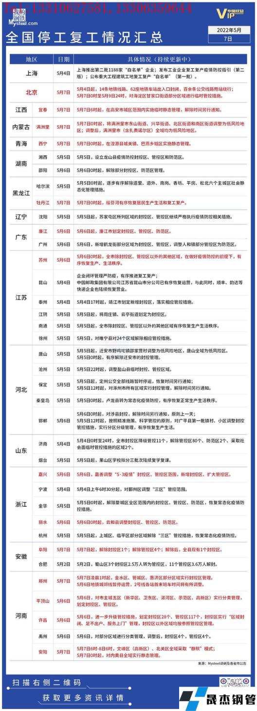 免責(zé)聲明:本網(wǎng)站(山東聊城晟杰無縫鋼管廠www.centurybiz.cn)刊載的“疫情影響丨全國停工復(fù)工情況匯總(5月7日)”等均源于網(wǎng)絡(luò),版權(quán)歸原作者所有,且僅代表原作者觀點,本文所載信息僅供參考。轉(zhuǎn)載僅為學(xué)習(xí)與交流之目的,如無意中侵犯您的合法權(quán)益,請及時聯(lián)系刪除。本網(wǎng)站刊登此篇文章并不意味著本站贊同其觀點或證實其內(nèi)容的真實性,我們不對其科學(xué)性、嚴肅性等作任何形式的保證。如果侵犯了您的版權(quán),請盡快聯(lián)系我們予以撤銷,謝謝合作!