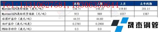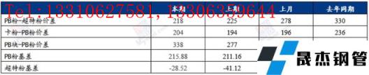 華東區(qū)域本周進(jìn)口礦價格震蕩下行,五一假期之后無縫厚壁鋼管廠家并未著急補庫,市場整體交投情緒不及預(yù)期。截止本周五,青島港口行情價格PB粉942元/噸,周環(huán)比下跌36元/噸;超特粉724元/噸,周環(huán)比下跌29元/噸;卡粉1146元/噸,周環(huán)比下跌26元/噸;PB塊1280元/噸,周環(huán)比上漲25元/噸,粉塊價差進(jìn)一步擴(kuò)大。