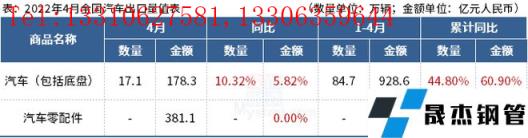免責聲明:本網站(山東聊城晟杰無縫鋼管廠www.centurybiz.cn)刊載的“海關總署:4月中國出口汽車17.1萬輛,同比增長10.32%”等均源于網絡,版權歸原作者所有,且僅代表原作者觀點,本文所載信息僅供參考。轉載僅為學習與交流之目的,如無意中侵犯您的合法權益,請及時聯系刪除。本網站刊登此篇文章并不意味著本站贊同其觀點或證實其內容的真實性,我們不對其科學性、嚴肅性等作任何形式的保證。如果侵犯了您的版權,請盡快聯系我們予以撤銷,謝謝合作!