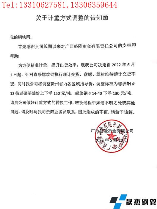 免責聲明:本網站(山東聊城晟杰無縫鋼管廠www.centurybiz.cn)刊載的“廣西盛隆冶金有限公司關于對貴州區域計重方式調整的告知函”等均源于網絡,版權歸原作者所有,且僅代表原作者觀點,本文所載信息僅供參考。轉載僅為學習與交流之目的,如無意中侵犯您的合法權益,請及時聯系刪除。本網站刊登此篇文章并不意味著本站贊同其觀點或證實其內容的真實性,我們不對其科學性、嚴肅性等作任何形式的保證。如果侵犯了您的版權,請盡快聯系我們予以撤銷,謝謝合作!