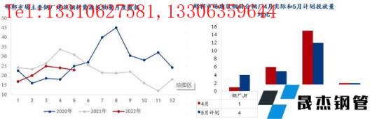 5月無縫厚壁鋼管廠家對京津冀區(qū)域投放量環(huán)比增加32.16萬噸,同比減少13.71萬噸。雖然無縫厚壁鋼管廠家生產(chǎn)成本高位,但產(chǎn)線復產(chǎn)的情況增加,具體來看:1、河鋼承鋼兩螺一線在產(chǎn),對京津冀投放量4月份22.5萬噸,5月份計劃22.5萬噸;2、河鋼樂鋼兩條螺紋產(chǎn)線在產(chǎn),4月唐山封城,資源主要對唐山本地投放,4月份合計13萬噸,5月份計劃投放13萬噸;3、敬業(yè)無縫厚壁鋼管廠家6條螺紋產(chǎn)線在產(chǎn),加上烏鋼資源流入,4月對京津冀投放量約43萬噸,5月計劃57.8萬噸;4、東華無縫厚壁鋼管廠家螺紋產(chǎn)線復產(chǎn),5月計劃投放10.19萬噸;5、鑫達一條螺紋產(chǎn)線不飽和生產(chǎn),4月京津冀僅投放6.5萬,5月份計劃投放10萬噸;6、4月建龍系無縫厚壁鋼管廠家對京津市場投放13.4萬噸左右,5月份計劃16萬噸左右,其中新?lián)徜撟疃唷?/p>