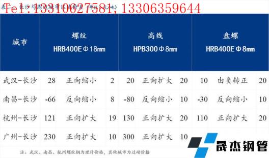 統一為理計單位后,武漢高于長沙28元/噸,南昌低于長沙66元/噸,杭州高于長沙121元/噸,廣州高于長沙230元/噸。