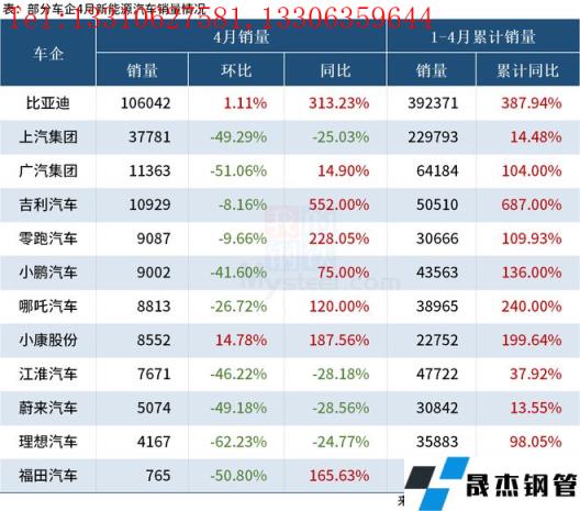 免責聲明:本網站(山東聊城晟杰無縫鋼管廠www.centurybiz.cn)刊載的“4月10家新能源車企銷量環比大降”等均源于網絡,版權歸原作者所有,且僅代表原作者觀點,本文所載信息僅供參考。轉載僅為學習與交流之目的,如無意中侵犯您的合法權益,請及時聯系刪除。本網站刊登此篇文章并不意味著本站贊同其觀點或證實其內容的真實性,我們不對其科學性、嚴肅性等作任何形式的保證。如果侵犯了您的版權,請盡快聯系我們予以撤銷,謝謝合作!