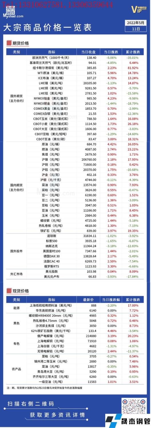免責聲明:本網站(山東聊城晟杰無縫鋼管廠www.centurybiz.cn)刊載的“俄烏局勢丨大宗商品價格一覽表(5月11日)”等均源于網絡,版權歸原作者所有,且僅代表原作者觀點,本文所載信息僅供參考。轉載僅為學習與交流之目的,如無意中侵犯您的合法權益,請及時聯系刪除。本網站刊登此篇文章并不意味著本站贊同其觀點或證實其內容的真實性,我們不對其科學性、嚴肅性等作任何形式的保證。如果侵犯了您的版權,請盡快聯系我們予以撤銷,謝謝合作!