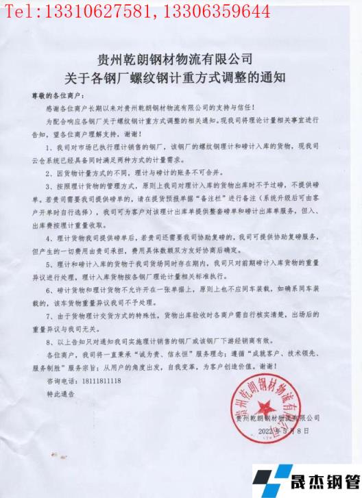免責(zé)聲明:本網(wǎng)站(山東聊城晟杰無(wú)縫鋼管廠www.centurybiz.cn)刊載的“貴州乾朗鋼材_無(wú)縫鋼管物流有限公司關(guān)于各無(wú)縫鋼管廠家螺紋鋼計(jì)重方式調(diào)整的通知”等均源于網(wǎng)絡(luò),版權(quán)歸原作者所有,且僅代表原作者觀點(diǎn),本文所載信息僅供參考。轉(zhuǎn)載僅為學(xué)習(xí)與交流之目的,如無(wú)意中侵犯您的合法權(quán)益,請(qǐng)及時(shí)聯(lián)系刪除。本網(wǎng)站刊登此篇文章并不意味著本站贊同其觀點(diǎn)或證實(shí)其內(nèi)容的真實(shí)性,我們不對(duì)其科學(xué)性、嚴(yán)肅性等作任何形式的保證。如果侵犯了您的版權(quán),請(qǐng)盡快聯(lián)系我們予以撤銷(xiāo),謝謝合作!