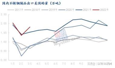 海關數據顯示,2020年之前中國大陸出口美國的不銹鋼制品的量在1萬噸/月左右,受疫情、當地供應下降、家庭補貼等因素影響,2020年下半年開始該量逐步放大。