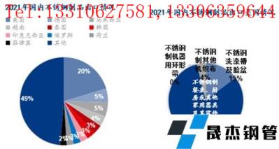 國內出口美國的不銹鋼制品的量相對而言占比較高,約有20%,不過不銹鋼制餐廚具等器件占比較高約81%,而此次清單中的不銹鋼洗滌槽及臉盆、不銹鋼機器用環形帶以及其他機織布的量占約19%(2021年量約4.1萬噸),其中不銹鋼洗滌槽及臉盆的量占約15%(2021年量約3.3萬噸)。