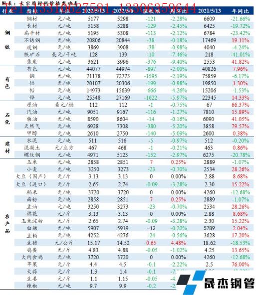 免責聲明:本網站(山東聊城晟杰無縫鋼管廠www.centurybiz.cn)刊載的“周報:大宗工業原材料、能源及農產品價格周報(5.09-5.13)”等均源于網絡,版權歸原作者所有,且僅代表原作者觀點,本文所載信息僅供參考。轉載僅為學習與交流之目的,如無意中侵犯您的合法權益,請及時聯系刪除。本網站刊登此篇文章并不意味著本站贊同其觀點或證實其內容的真實性,我們不對其科學性、嚴肅性等作任何形式的保證。如果侵犯了您的版權,請盡快聯系我們予以撤銷,謝謝合作!
