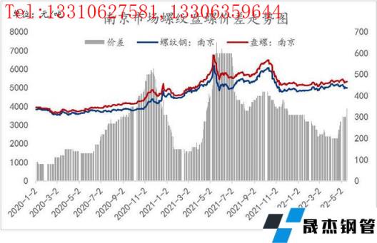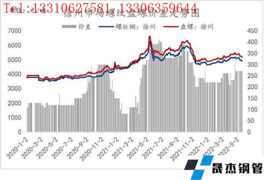 2、從目前省內(nèi)部分無縫厚壁鋼管廠家生產(chǎn)情況來看,考慮到盤螺利潤明顯好于螺紋、優(yōu)線,部分無縫厚壁鋼管廠家進(jìn)而進(jìn)行產(chǎn)線調(diào)劑,具體產(chǎn)線由生產(chǎn)優(yōu)線轉(zhuǎn)換為生產(chǎn)盤螺,同時(shí)由于目前無縫厚壁鋼管廠家利潤整體偏低,且螺紋銷售壓力仍存,鐵水或存分配轉(zhuǎn)產(chǎn)情況,由螺紋流向盤螺,近期市場對于盤螺的需求仍呈現(xiàn)上升態(tài)勢,存量需求隨著疫情的逐漸轉(zhuǎn)好也將持續(xù)釋放,預(yù)計(jì)省內(nèi)螺紋盤螺價(jià)差將繼續(xù)呈現(xiàn)擴(kuò)大的態(tài)勢。