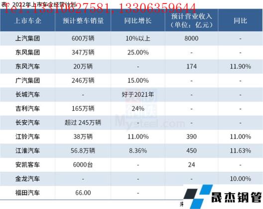 免責聲明:本網站(山東聊城晟杰無縫鋼管廠www.centurybiz.cn)刊載的“12家上市車企公布2022年經營計劃”等均源于網絡,版權歸原作者所有,且僅代表原作者觀點,本文所載信息僅供參考。轉載僅為學習與交流之目的,如無意中侵犯您的合法權益,請及時聯系刪除。本網站刊登此篇文章并不意味著本站贊同其觀點或證實其內容的真實性,我們不對其科學性、嚴肅性等作任何形式的保證。如果侵犯了您的版權,請盡快聯系我們予以撤銷,謝謝合作!