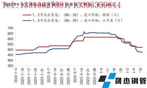 因成品銷售低迷,土耳其無(wú)縫厚壁鋼管廠家連續(xù)幾周遠(yuǎn)離深海廢鋼采購(gòu),近期開(kāi)始恢復(fù)采購(gòu),據(jù)調(diào)研,截止5月20日,土耳其HMS1:2(80:20)廢鋼到岸價(jià)在475美元/噸左右,距離3月份的高點(diǎn)大幅下降190美元/噸,離年內(nèi)低點(diǎn)約21美元/噸。韓國(guó)也因海外廢鋼價(jià)格的大幅走低,連續(xù)4周未對(duì)日本廢鋼進(jìn)行采購(gòu),截止5月20日,韓國(guó)HMS1:2(80:20)廢鋼到岸價(jià)在520美元/噸,距離3月份的高點(diǎn)跌95美元/噸,離年內(nèi)低點(diǎn)約21美元/噸。截止目前,國(guó)際主流廢鋼進(jìn)口國(guó)廢鋼價(jià)格較年內(nèi)峰值大跌近百美元,多接近于年內(nèi)低點(diǎn)。