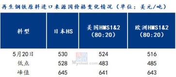 進(jìn)入5月,日本東京制鐵廢鋼采購(gòu)價(jià)格已經(jīng)歷了六連跌,5月份的關(guān)東鐵源出口招標(biāo)會(huì),又再現(xiàn)流標(biāo)局面。據(jù)調(diào)研,截止5月20日,日本HS廢鋼到岸價(jià)在530美元/噸左右,距離4月初的高點(diǎn)大幅下降115美元/噸,近乎已回到年內(nèi)低點(diǎn);截止5月20日,美國(guó)HMS1:2(80:20)廢鋼到岸價(jià)在524美元/噸,距離4月份的高點(diǎn)跌117美元/噸,離年內(nèi)低點(diǎn)約41美元/噸;截止5月20日,歐洲HMS1:2(80:20)廢鋼到岸價(jià)在516美元/噸,距離4月份的高點(diǎn)跌127美元/噸,離年內(nèi)低點(diǎn)約31美元/噸;當(dāng)前歐美再生鋼鐵原料價(jià)格已接近年內(nèi)低點(diǎn),日本再生鋼鐵原料的價(jià)格更是已回到了年初水平。